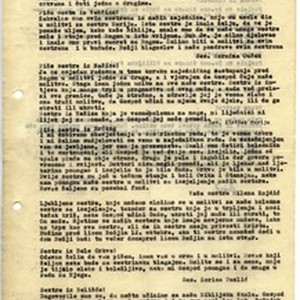 Circular letter for September 1973 containing short messages from sisters in Veščica, Našice, Brčko, Zagreb, Bela Crkva, Belišće and Vadarci, and a short announcement on the financial fond that women started in churches to help those in need. [Description English/roman)] Okružno pismo za rujan 1973. godine koje sadrži kratke poruke sestara iz Veščice, Našica, Brčkog, Zagreba, Bele Crkve, Belišća, Vadaraca te kratku objavu o financijskom fondu koje su započele žene iz crkava kako bi pomogle onima u potrebi. [Description (original non-English/roman language/script)]
