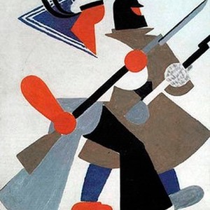 A poster showing a sailor and a Red Army soldier holding rifles. No text. [Description English/roman)]