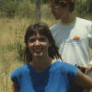 Larry Oglesby's senior advisor, Laurie M. Lennan, standing near Puddingstone Lake.