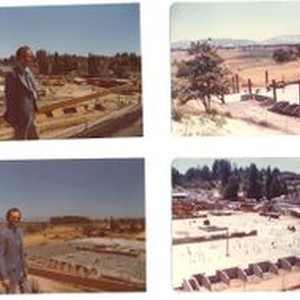 Photo--color: New Palm Drive Hospital under construction in 1974. Bottom right photo looking south on Petaluma Avenue. Top right photo, the Laguna can be seen in the background. Four pictures on a sheet.