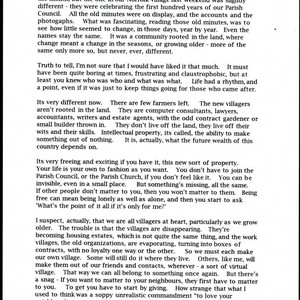 Thought for the day by Charles Handy on the disappearance of villages and how people must make their own communities in the modern age, May 2, 1995; Charles Handy Papers; Box 18, Folder 11; 1 page
