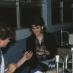 Kathy Birch and another student working together in the biology lab.