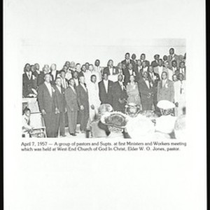 Pages 30 & 32 from an unidentified publication on the Church of God in Christ regarding the First Ministers and Workers meeting (1957 April 7) and the First General Assembly and Constitutional Convention (1967 February). [Description English/roman)]