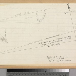 This and the rest of the maps are bound in folder: "Goodwin et al vs. Rowland, Survey of Rancho la Puente..." p. 12 - one parcel in ink and one in pencil with courses & distances. Title supplied by cataloger.