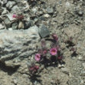 Close-up of small purple flowers against a rocky surface. at Middle Fork, Lytle Creek.