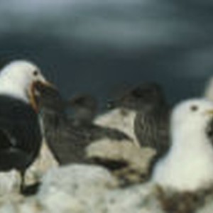 Parent California gull feeding chick by regurgitation.