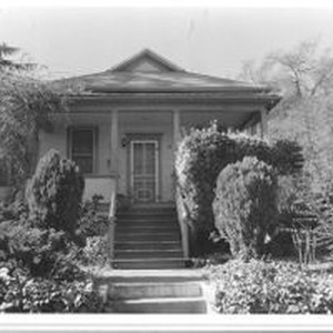 Photo, black and white: Sebastopol house at 284 Jesse Street a Queen Anne cottage built in 1905 in the Brittian Addition. House photographed in 1993 by Evelyn McClure for her book "Sebastopol, California : History, Homes and People."