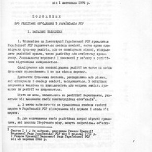 Regulations on Religious association of Ukrainian SSR. Approved by decree of the Presidium of the Supreme Soviet of the Ukrainian SSR, 1 November 1976. Comments from 1990? [Description English/roman)] Положення про релігійні обєднання в Українські РСР. Затверджено Указом Президії Верховної Ради Української РСР, від 1 листопада 1976. Коментарі з 1990 року. [Description (original non-English/roman language/script)]