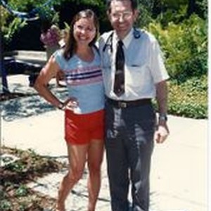 Photo -color : Palm Drive Hospital 1986 two unidentified people outside of Palm Drive. Dated on verso: June 1986