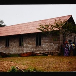 Photograph: "To Mother Lott, side view of the church house at Tugbake Mission, Liberia", 1980?-1996? [Description English/roman)]