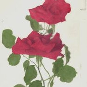 Photo--hand colored: Two red roses hand colored in deep red. Circa 1930s. Sebastopol Rose