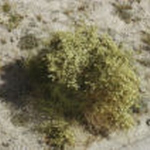 Bush of light colored flowers in rocky sand at Mecca Beach.