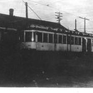 Photo--black and white: P&SR electric interurban passenger car No. 53.
