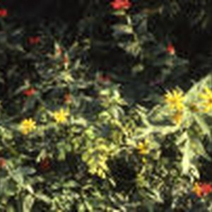 Bushes with yellow and red flowers.