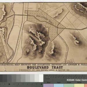 Los Feliz to Glendale Blvd. to Chevy Chase to Colorado Blvd. This is the lower half of a sheet also containing 493358, a bird's-eye view of the area. Prime meridian: Gm. Relief: shaded. Projection: Cylindrical. Printing Process: Lithography. Verso Text: MS note 493357.