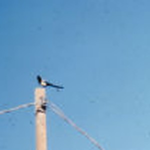 A yellow-billed magpie on a telephone pole.
