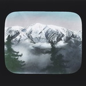 Glass photographs -many in color- of Southern California scenes. They include Pasadena views (homes, a school, a church), Mt. Lowe, poppy fields, sunset over the Pacific, San Gabriel Mission, Catalina Island, Los Angeles (Eastlake Park), hauling cotton in Imperial Valley, San Luis Rey arches, headwaters of Owens River.