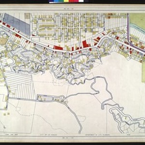 WPA Land use survey map for the City of Los Angeles, book 4 (Van Nuys District to Garvanza District), sheet 21. Includes: [Title page and] legend [for Book] no. IV Composite index to Land use map books [for Book 4]. Land use survey - City of Los Angeles. Department of City Planning. These maps were prepared with the assistance of the Works Progress Administration project no. 665-07-G-226 through 1939 to 1940. The land use data contained herein was compiled from a survey made with the assistance of the Civil Works Administration project no. 642, State Emergency Relief Administration project nos. 1-F2-318 and 1-F2-318A and Works Progress Administration project nos. 65-3-4377, 1101-2011 and 465-03-3-106. This survey functioned from Dec. 18, 1933 to May 8, 1939 and covers approximately 460 square miles within the boundary of the City of Los Angeles. It includes 347 colored drawings bound in 10 volumes of which this is no. IV. The land use survey was supervised by the Zoning Engineer. The land use maps were supervised by the Illustrative Planning Engineer for the Sponsoring Department.
