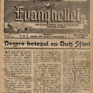 The herald of Gospel is the periodical publication of the biggest romanian penticostal group between 1953-1989. [Description English/roman)] Vestitorul Evangheliei este publicatia periodica a grupului penticostal majoritar din Romania intre anii 1945-1948. [Description (original non-English/roman language/script)]