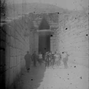 Image / Group of tourists standing in front of the Treasury of Atreus in …