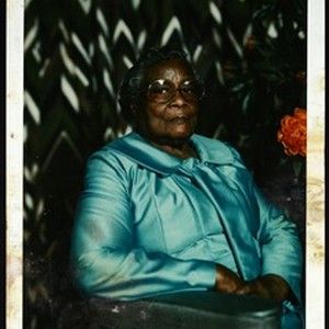 Photograph of "Mother Emma Barron", [s.d.]. "Polaroid AO4033A85322B" -- printed on back. [Description English/roman)]