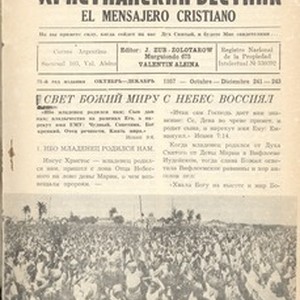 The Christian Herald was an informational organ of the Union of Pentecostal churches of "Assemblies of God" in South America. The journal was founded in August 1937 at the founding meeting of the Slavic Pentecostal churches of South America. Believers from Argentina, Paraguay, Uruguay and Brazil were present at the meeting. The purpose of the journal was to "carry unity and communication of the Spirit to the midst of believers in full Gospel". The journal united Pentecostal churches and became a link which connected believers scattered all over the world. Thus, letters of Christians of Evangelical faith from Germany, Belgium, France, the Netherlands, Canada, the United States, Uruguay, Paraguay, the Philippines, China, Australia and other countries were published in the journal journal. The first issue was published in Russia in October 1937. Subsequently, the journal spread to 40 countries where the Slavic diaspora lived. The headquarters of the journal was located in Buenos Aires. Juan Zub-Zolotarow was responsible for the journal. He was a permanent editor for 42 years. The journal was published for offerings of believers. Spiritually-edifying and theological articles of Donald Gee, Alfred Goets, R. Bratslavsky, N. Vodnevsky, D. Bespalov were published in the journal. On the last pages, as a rule, information from local churches and the mission and evangelical fields of North and South America, Canada, Africa, Australia, India, Europe and China was published. Thus the activity of such evangelists as Oral Roberts, Billy Graham, T. Giks, and William Brankham was reported in detail. [Description English/roman)] Христианский Вестник -- информационный орган Союза Пятидесятнических церквей «Собраний Божиих» Южной Америке. Журнал был основан в августе 1937 года на учредительном собрании славянских пятидесятнических церквей Южной Америки. На этом съезде присутствовали верующие с Аргентины, Парагвая, Уругвая и Бразилии. Цель журнала: «Нести единство и общение духа между верующими в полное Евангелие». Журнал объединил вокруг себя пятидесятнические церкви и стал как-бы связующим звеном между верующими, рассеянными по всему миру, публикуя письма христиан веры евангельской-славян из Германии, Бельгии, Франции, Голландии, Канады, Соединенных Штатов, Уругвая, Парагвая, Филиппин, Китая, Австралии и других стран. Первый номер журнала, издававшегося на русском языке, вышел в октябре 1937 года. Впоследствии журнал распространялся более чем в 40 странах, где проживала славянская диаспора. Штаб квартира журнала находилась в Буэнос-Айресе. Ответственным за журнал был назначен И.Зуб-Золоторев, который и был бессменным редактором на протяжении 42-х лет. Издавался журнал на добровольные пожертвования верующих. В журнале печатались духовно-назидательные и богословские статьи Дональда Джи, Альфреда Гоетца, Р.Брацлавского, Н.Водневского, Д.Беспалова. На последних страницах, как правило, публиковались информационные сообщения от поместных церквей и евангелизационных и миссионерских полей Северной и Южной Америки, Канады, Африки, Австралии, Индии, Европы и Китая. Так освещалась подробно деятельность евангелистов: Орала Робертса, Билли Грэма, Т.Гикса, Уилльяма Бранхама. [Description (original non-English/roman language/script)]