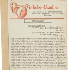 Pentecostal sounds : monthly magazine of the Pentecostal church, vol. 03 (1950), no. 01 Pinkster-klanken : maandblad van de Pinkstergemeente, vol. 03 (1950), nr. 01