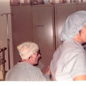 Photo--color: Adelia Bracken and Jane Prodzenski- Palm Drive Hospital nursing staff in surgery clothes. 1977