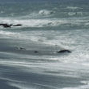 Waves roll onto shore on the California coast.
