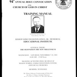94th Annual Holy Convocation, Church of God in Christ (COGIC), educational institute training manual, "The old path in the new millennium", Memphis, Tennessee, 2001 November 7-10. [Description English/roman)]