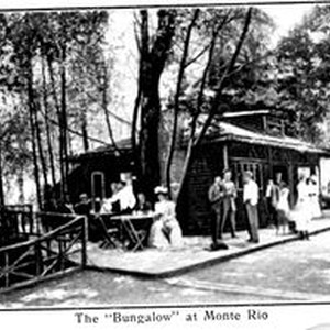 Print--black and white: Postcard booklet photos of Monte Rio on the Russian River, California circa 1900s. Caption: The "Bungalow" at Monte Rio.