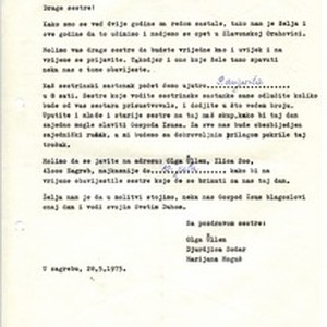 Invitation to the annual women's meeting to be held in Orahovica on August 9, 1975, accompanied by a letter with a testimony and short messages from sisters in Đakovo and Našice and a short thanks for the received financial support. [Description English/roman)] Pozivnica na godišnji ženski sastanak koji se treba održati u Orahovici 9. kolovoza 1975. godine uz pismo koje sadrži kratko svjedočanstvo te poruke sestara iz Đakova i Našica i kratku zahvalu za primljene dobrovoljne priloge. [Description (original non-English/roman language/script)]