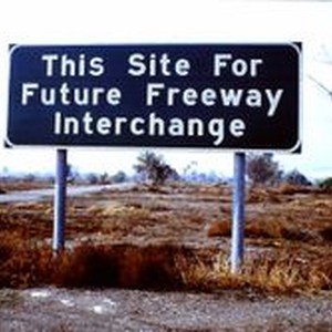 Slide--color: Highway sign "This Site for Future Freeway Interchange." Probably at intersection of 116 and 101 highways, 1970.