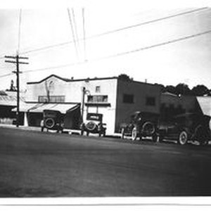 Photo, black and white: Four photos of the exterior of Art Point Studios the business owned by Charles R. Myers. The photos show vintage cars circa 1920's. Art Point Studios, located at 340 North Main Street was founded by Charles R. Myers in 1917.