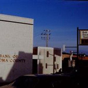Slides, color transparency: The Bank of Sonoma County building at the corner of Main Street and Bodega Avenue (Highway 12) 1977