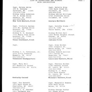 List of supervisors and bishops with jurisdiction, Church of God in Christ, Department of Women, [s.d.]. Two different lists. [Description English/roman)]