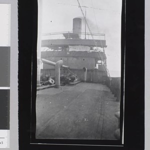The bridge and deck of the ship Mexicano. Title and date devised by cataloger. Copy print of original. Jack and Charmian London took the Mexicano from Veracruz to Tampico Mexico in May of 1914.
