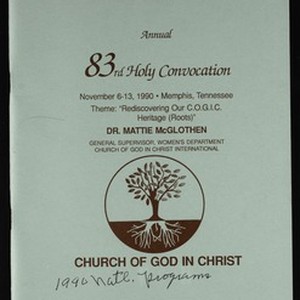 Annual Holy convocation of the Church of God in Christ (83rd: 1990), Women's department directory, Memphis, Tennessee, 1990 November 6-13. [Description English/roman)]