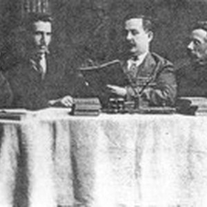 A photograph showing I.E. Voronaev (in the middle), leader and founder of Pentecostal movement in Russia, Ukraine and the former USSR, surrounded by members of his church's council. [Description English/roman)]