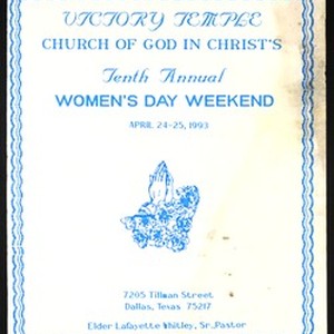 10th Annual Women's day weekend program, "The power of oneness", Victory Temple Church of God in Christ, Dallas, Texas, 1993 April 24-25. [Description English/roman)]