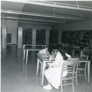 Martinez siblings Phillip and Susan sit and write at a table in City Terrace Library, Summer 1966.