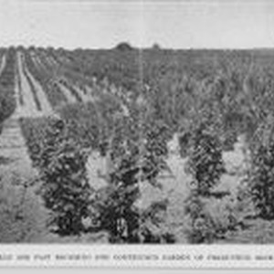 Photo--black and white: Panorama photo of rolling hills with berry plants. Several house can be seen on the horizon. The photo caption: The low rolling foothills are fast becoming the continuous garden of productive orchards and berry patches." Photographed by Turrill & Miller.