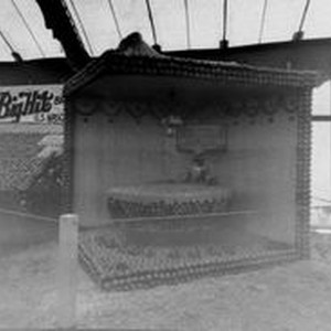 Photo--black and white, from Borba celluloid negative: Gravenstein Apple Show, about 1930. An unidentified display of the nursery rhyme "Little Jack Horner" made of apples. In the background a display of G. S. Mascagni Company of Sebastopol of "Big Hit" brand apples