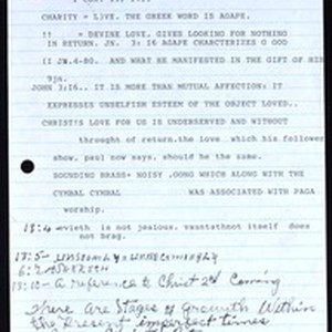 "The supremacy of love over gifts", notes for a sermon or lecture, [s.d.]. [Description English/roman)]