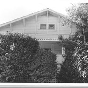 Photo, black and white: Sebastopol house at 332 West Street, a Craftsman bungalow built about 1915 in the Morris Addition. House photographed in 1993 by Evelyn McClure for her book "Sebastopol, California : History, Homes and People."