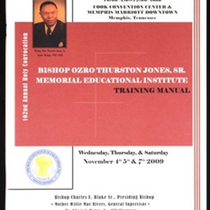 102nd Annual Holy Convocation, Church of God in Christ (COGIC), educational institute training manual, Memphis, Tennessee, 2009 November 4, 5 & 7. [Description English/roman)]