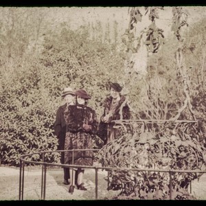 A group posing for a photo on the grounds of the Huntington. From let to right: Chin Hing Qong, an unidentified woman, and Mabel Hong. Chin Hing Qong is Mabel Hong's father. Hong family papers addenda (1). The Huntington Library, San Marino, CA.