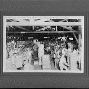 Photo--black and white, matted: The interior of packinghouse Number 2 in Sebastopol, California.
