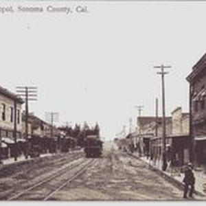 Photo--colorized: Main Street Sebastopol, about 1915.