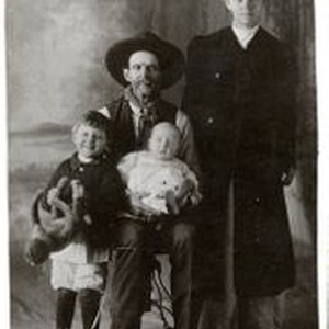 Photo: The grandparents of Isaac Tinney, 1914. Adults Joe Tinney and Stella Tinney, young boy Isaac (Ike) and baby Elbert Tinney.